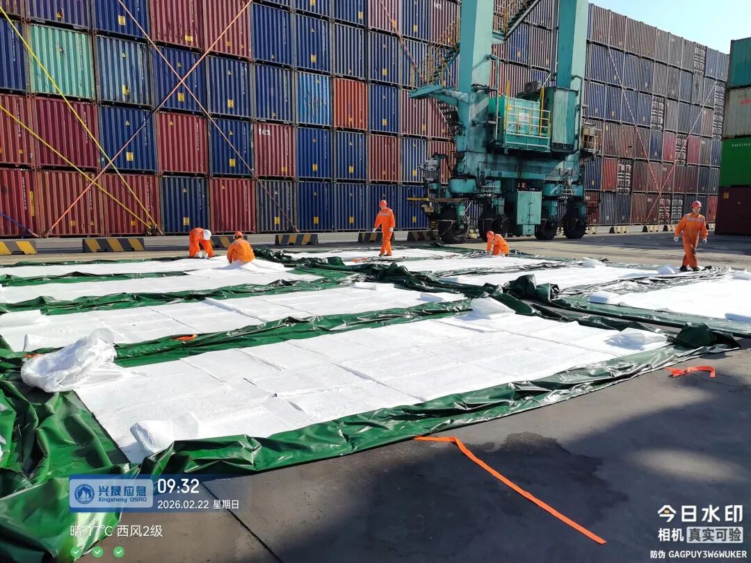 假期期间,多起集装箱泄漏及场地污染风险在不同码头接连发生。在浦东码头,应急人员迅速完成围控、清洗及再次防护。在明东码头,凌晨突发泄漏,应急人员连夜开展现场处置。随后多箱泄漏风险出现,团队均在短时间内完成围控与防护,避免污染扩大。2月22日,一艘靠港作业船舶发现多达10个集装箱存在不同程度泄漏风险。兴晟应急人员迅速到场,与港区协同开展勘察与防护,在6小时内完成全部应急处置,有效避免环境影响。